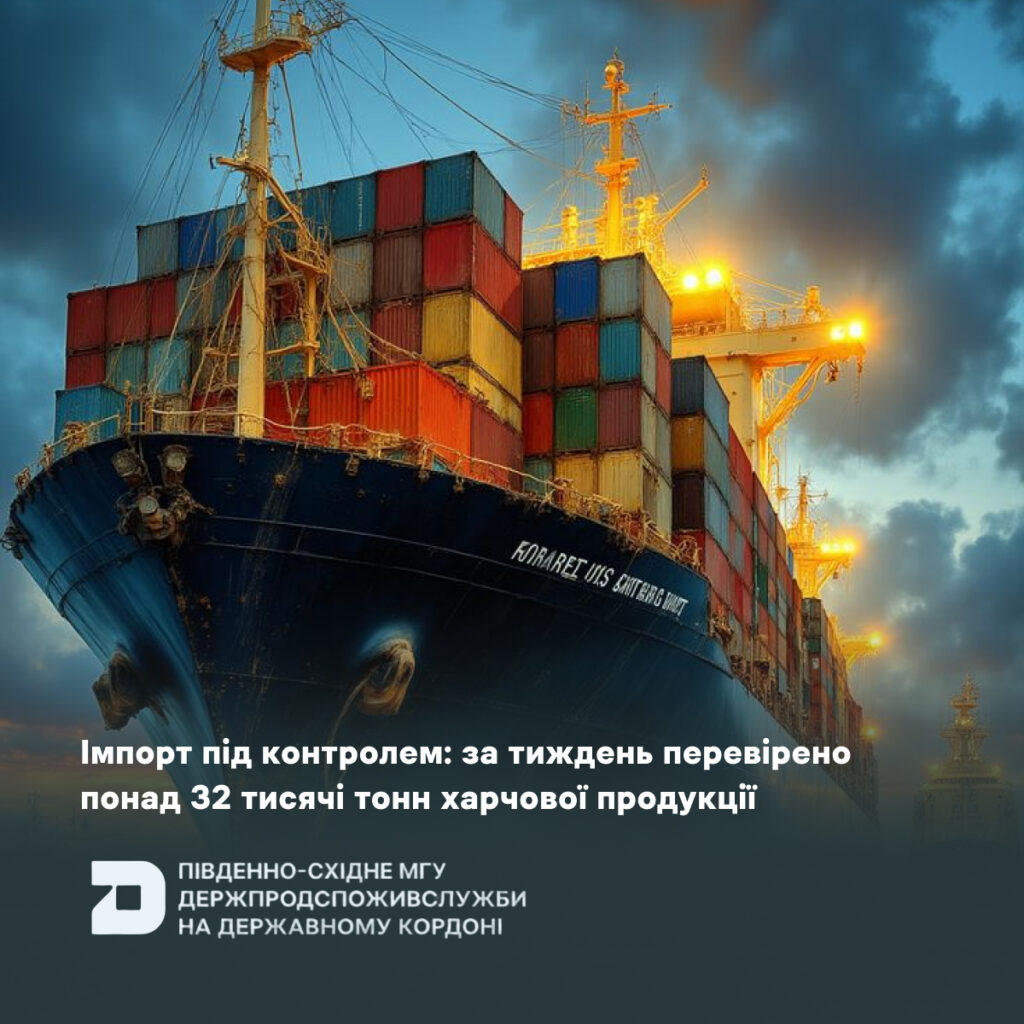 Упродовж 15–21 грудня 2025 року спеціалісти Південно-Східного МГУ Держпродспоживслужби на державному кордоні здійснили державний контроль імпортних вантажів та оформили 32 670 тонн харчових продуктів, а також 148 тонн кормів і ветеринарних препаратів.