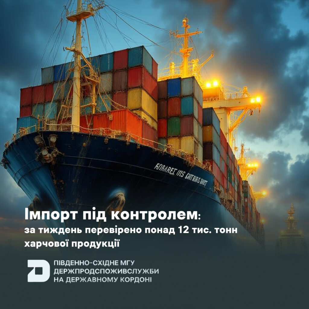 З 23 лютого по 1 березня спеціалісти Південно-Східного МГУ Держпродспоживслужби на державному кордоні здійснили державний контроль імпортних вантажів та оформили 12 632 тонни харчових продуктів.