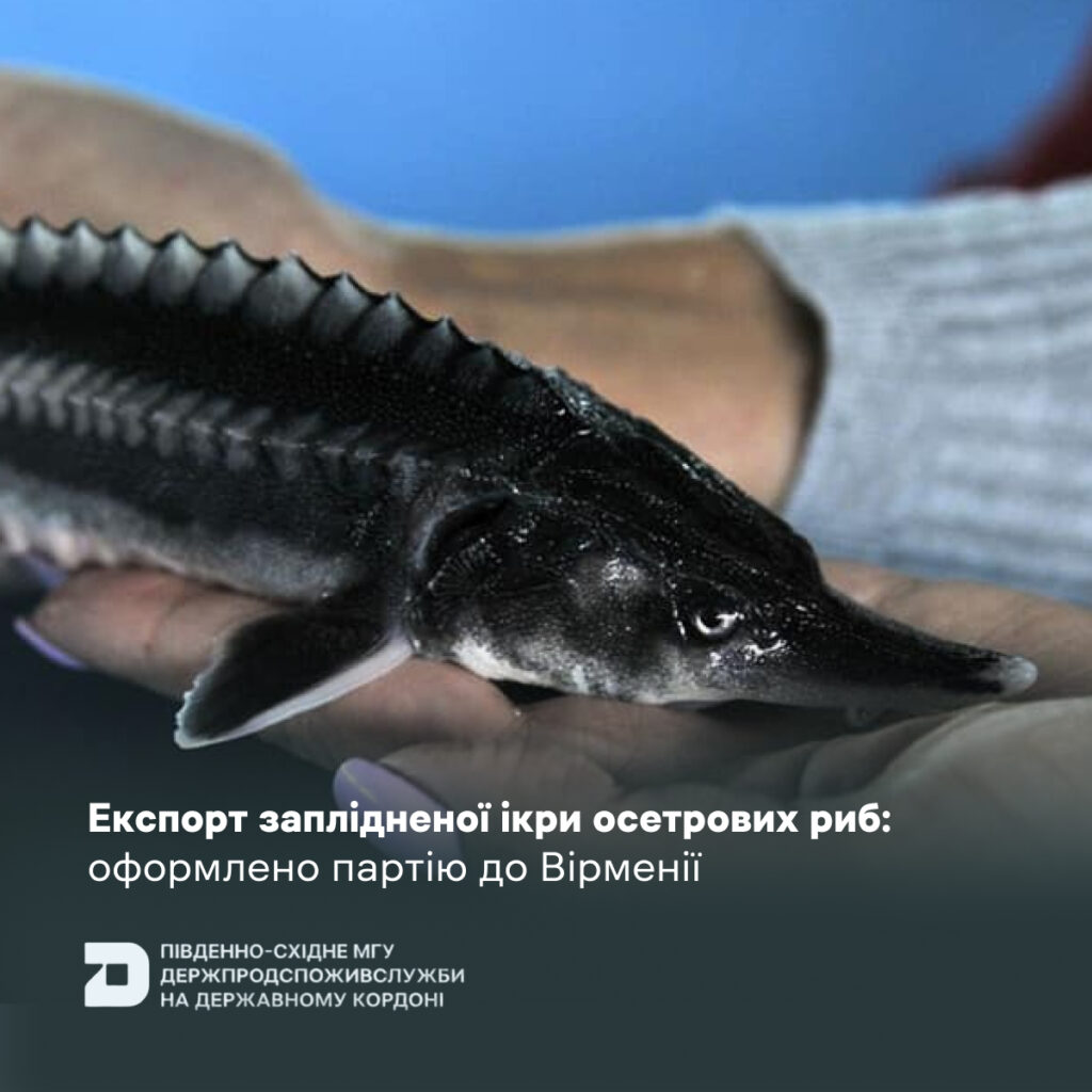 6 квітня фахівці Південно-Східного МГУ Держпродспоживслужби на державному кордоні оформили дозвільні документи на експорт 14 кг заплідненої ікри осетрових риб до Вірменії.
